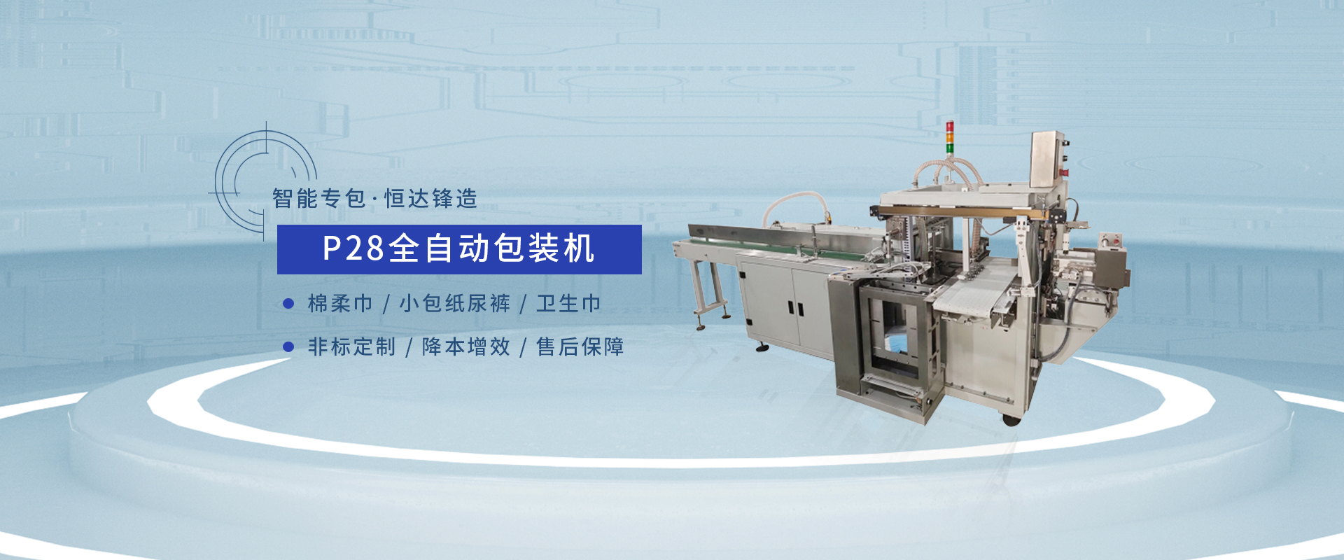 P28包装机是主要用于卫生巾、婴儿纸尿裤(小包)、婴儿护理垫、棉柔巾等装袋封口的全自动包装机。